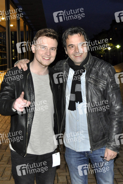 Toni Kraus mit Vater Thomas 'Rups' Unger nach der Aufzeichnung der MDR-Talkshow 'Riverboat' im Studio 3 der Media City Leipzig. Leipzig, 07.05.2021
