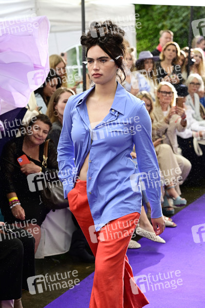 Model bei der Anja Gockel Fashion Show 'Let the Birds Fly' auf der Berlin Fashion Week S/S 2025 im Paris44. Berlin, 02.07.2024