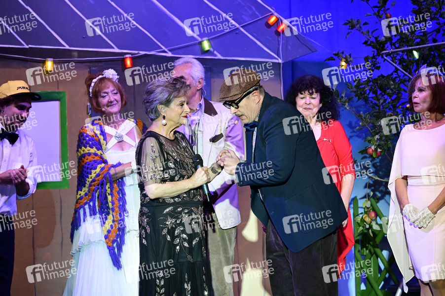 Dagmar Frederic und Alexander G. Schäfer bei der Premiere des Theaterstücks 'Maxe Baumann - Ferien ohne Ende' während der Beelitzer Festspiele 2025 auf der Freilichtbühne. Beelitz, 14.08.2025