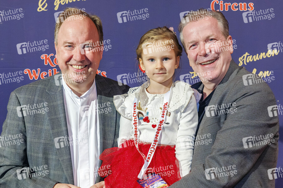 Robert Kleine und Christoph Kuckelkorn mit Enkelin Sophie bei der Premiere vom 10. Kölner Weihnachtscircus im Palastzelt an der Zoobrücke. Köln, 29.11.2025