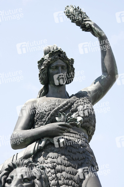 weibliche Symbolgestalt und weltliche Patronin Bayerns, im Auftrag von König Ludwig I. in den Jahren 1843-1850 errichtet, Entwürfe von Leo von Klenze, 18.52 Meter hoch, Bronzehohlguss, Höhe des Steinsockels 8.92 Meter, Bildhauer Ludwig Schwanthaler