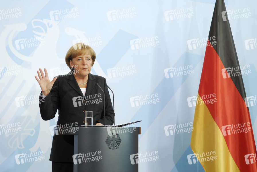 Bundeskanzlerin Angela Merkel bei einer Pressekonferenz zum Hilfspaket der Bundesregierung für die deutschen Banken angesichts der Weltweiten Finanzkrise. Berlin, 13.10.2008