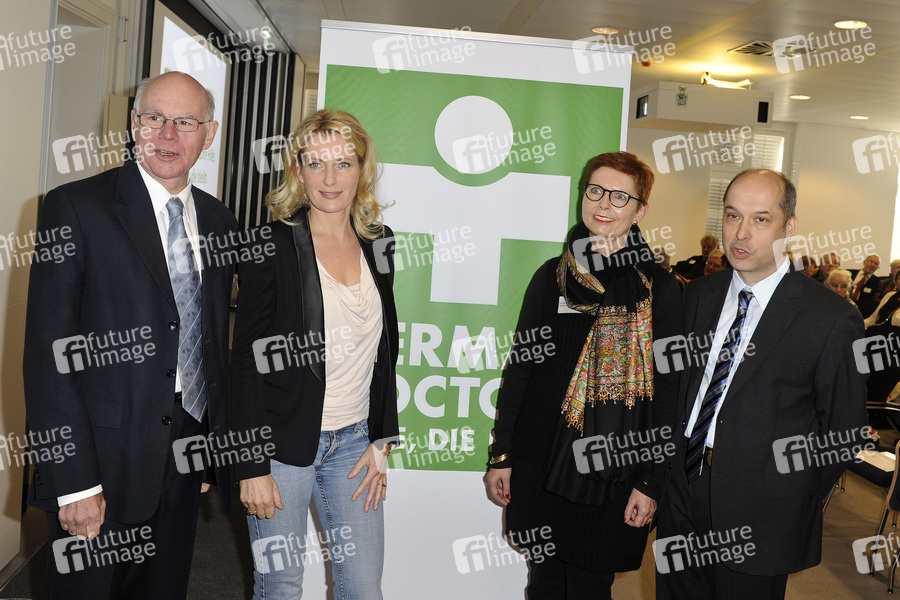 Norbert Lammert, Dr. Maria Furtwaengler, Dr. Elisabeth Kauder und Dr. Harald Kischlat bei der Pressekonferenz zum 30 jährigen Jubiläum von German Doctors e.V. (ehemals Ärzte für die Dritte Welt) im Besucher- und Schulungszentrum Karl Storz GmbH und Co. KG. Berlin, 13.11.2013