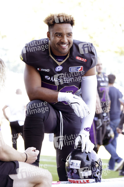 Daniel Josiah (53) beim American Football-Spiel Frankfurt Galaxy gegen Madrid Bravos in der PSD Bank Arena Frankfurt. Frankfurt am Main, 10.08.2024
