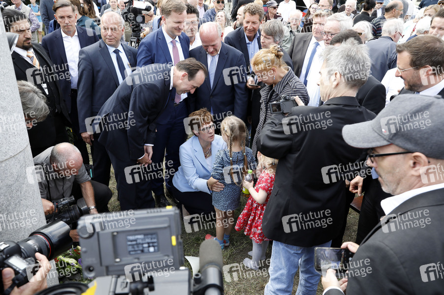 Ingo Senftleben, Annegret Kramp-Karrenbauer, Elisabeth und Alexandra Hildebrandt bei einer Gedenkveranstaltung der Brandenburger und Berliner CDU an der Glienicker Brücke. Potsdam, 13.08.2019