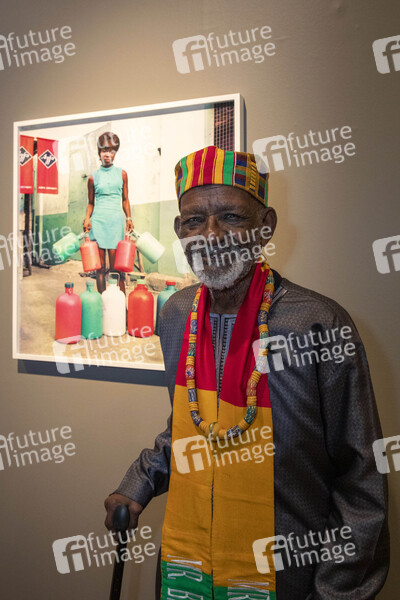 James Barnor mit seiner Fotografie beim Pressebesuch der Fotokunstmesse 'PARIS PHOTO' im Grand Palais. Paris; 10.11.2019