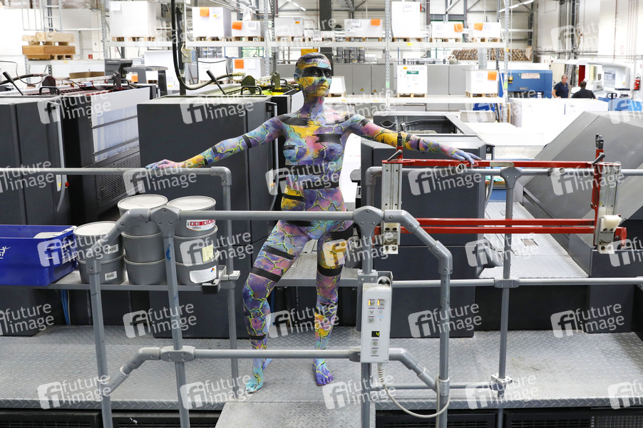 Jörg Düsterwald, einer der bekanntesten Bodypainting- und Bodyartkünstler Deutschlands macht auf seine ganz eigene Art auf die prekäre Situation freischaffender Künstler während der Corona-Pandemie aufmerksam: Unter dem Hashtag #WirzeigenFarbe hat der Hamelner Künstler in der Produktionshalle der Druckerei QUBUS media mit seinem Model Lisa ein ausdruckstarkes Live-Bodypainting inszeniert - denn Künstlerinnen und Künstler wie er sehen und fühlen sich derzeit wortwörtlich 'ausgezogen bis aufs letzte Hemd'. Und nichts symbolisiert diesen bekannten Spruch besser als ein Bodypainting auf nackter Haut in einer Umgebung, in der es jeden Tag um Farbe geht. Die Live-Performance fand mit dem zeitgleichen Druckstart von Jörg Düsterwald's neuem Premiumkalender 'Bodypainting in Nature 2021' statt. Hannover, 14.07.2020