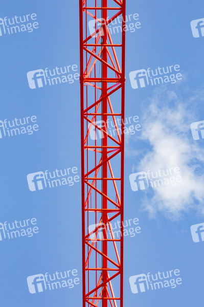 Kran, Turmkran, Turmkräne, Hebemaschine, Turmdrehkran, Obendreherkran, Krantechnik, Kranvermietung, Kranzubehör, Baukanhandel, Krananstrich, Kranfarbe, Baustelle, Hochbau, Hochbaukrane, Tiefbau, Fachwerkträger, Drehkranz, Vorderer Auslager, hinterer Ausleger, Katzausleger, Nadelausleger, Turmkrankonstruktion, Wolffkran, Baumaschinen, Baumaschienenhersteller, Kranhersteller, Turmspitze, Ballastgewicht, Gegenausleger, Traglast, Widerlager, Aufstellfläche, Bodenplatte, Betongewichte, Stahlrohrkonstruktion, Lastmoment, Krankomponenten, Fundamentanker, Turmabspannung, Innenkletterleiter, Kranfahrer, Kranführer, Krankanzel, Steuerkanzel, Wirtschaft, Bau, Symbolbild, Symbolfoto
