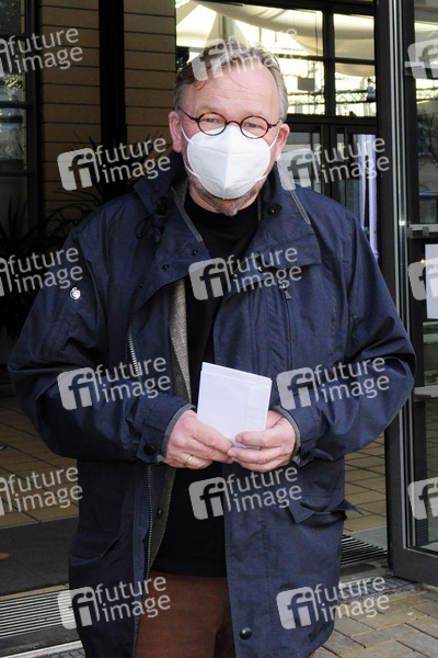 Bernd Stelter bei der Ankunft zur Aufzeichnung der MDR-Talkshow 'Riverboat' im Studio 3 der Media City Leipzig. Leipzig, 05.03.2021