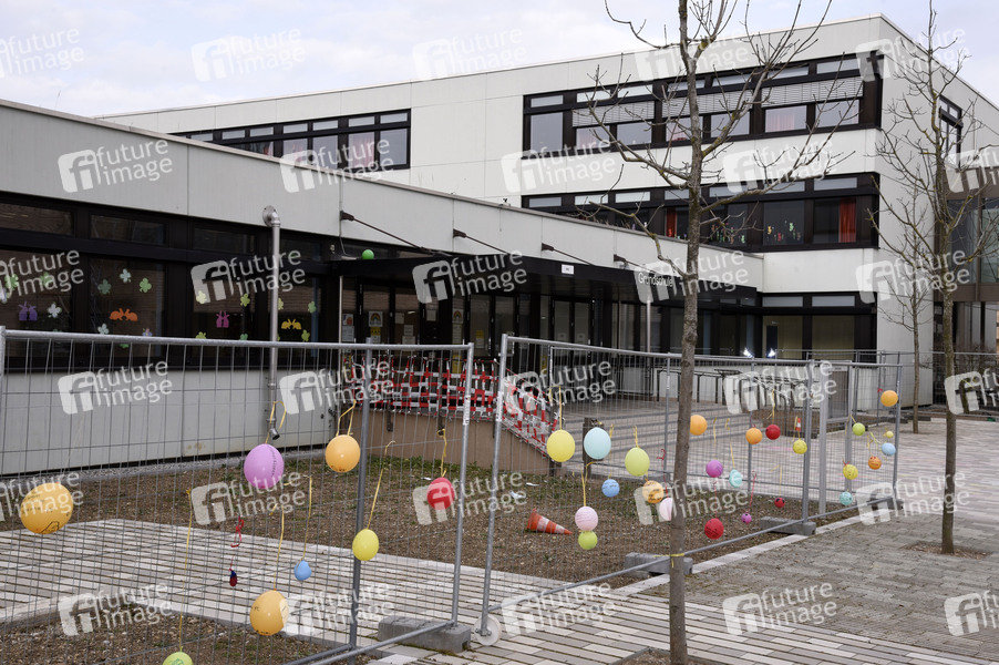 Grundschüler haben im Wechselunterricht Luftballons mit Wünschen 2021 vor allem gegen die Corona-Einschränkungen beim Schulunterricht gestaltet, hier in einer Grundschule in Haar bei München. Haar, 04.03.2021