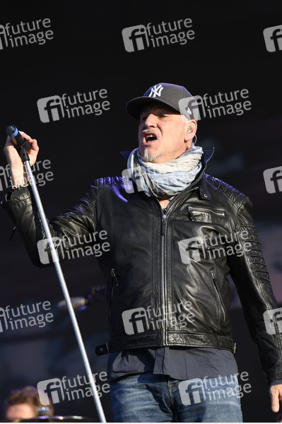 Kai Wingenfelder von Fury in the Slaughterhouse live beim Autokultur-Konzert auf dem Schützenplatz. Die Besucher verfolgen unter Berücksichtigung klarer Hygiene-Vorschriften während der Corona-Krise den Auftritt aus dem Auto. Hannover, 14.05.2020