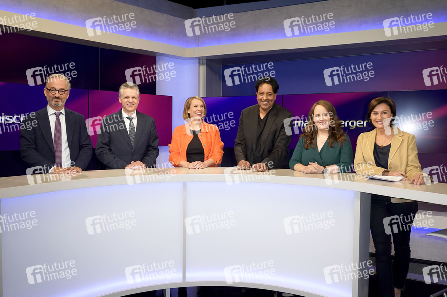 Jan Fleischhauer, Cherno Jobatey, Helene Bubrowski, Thorsten Frei, Ricarda Lang und Sandra Maischberger in der ARD-Talkshow 'maischberger' im Studio Berlin Adlershof. Berlin, 27.05.2025