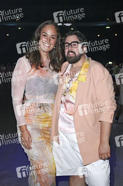 Saskia Grimm und Steven Preisner bei der Kilian Kerner Fashion Show auf der Berlin Fashion Week S/S 2026 in der Uber Eats Music Hall. Berlin, 02.07.2025