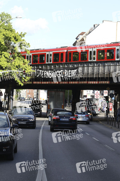 Ein Transparent 'Sternbrücke bleibt' als Zeichen des Protests gegen den geplanten Abriss und Neubau der Sternbrücke in der Sternschanze. Hamburg, 05.05.2020