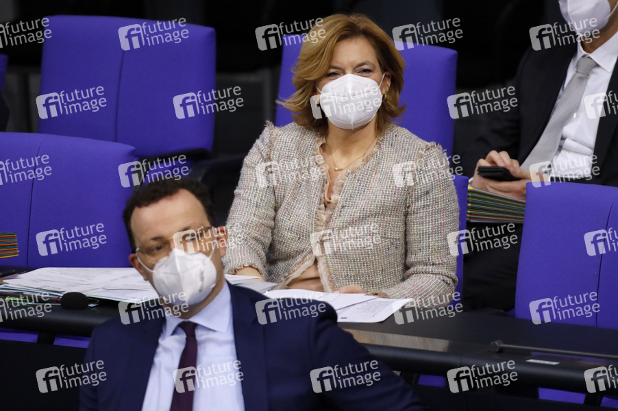 Jens Spahn und Julia Klöckner in der 203. Sitzung des Deutschen Bundestages im Reichstagsgebäude. Berlin, 13.01.2021