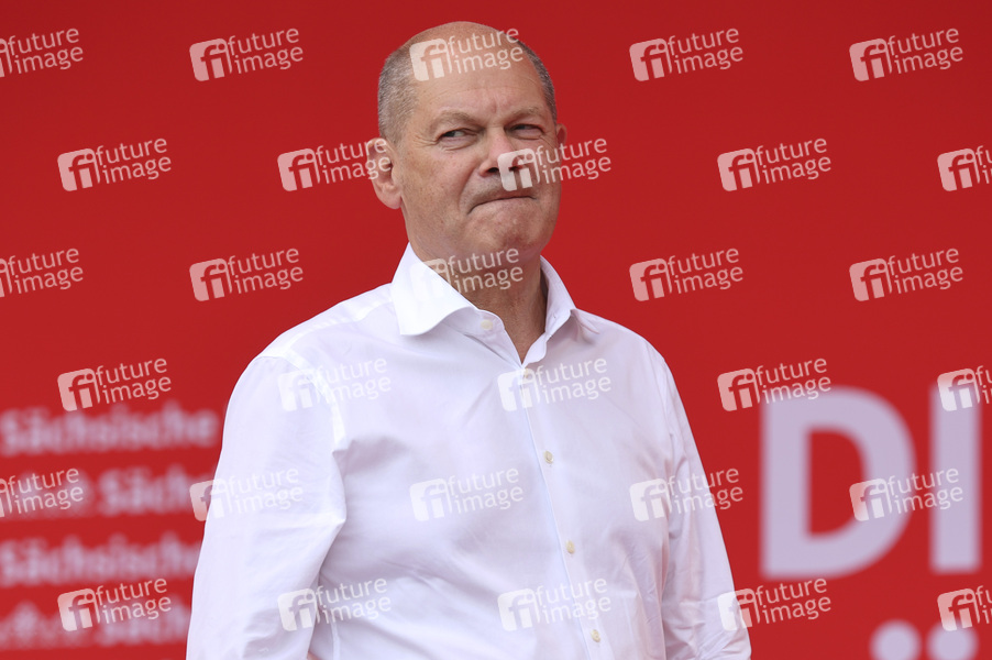 Olaf Scholz bei einer Wahlkampfveranstaltung der SPD zur Landtagswahl in Sachsen auf dem Schloßplatz. Dresden, 19.07.2024