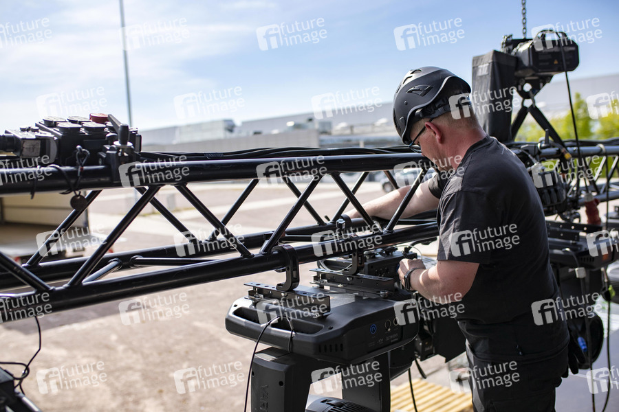 Bühnenbau, Bühnenaufbau, Musik, Konzert, Auftritt, Bühne, Stage, Unterhaltung, Entertainment, Kultur, Corona, Sars-CoV-2, Covid-19, Coronavirus, Coronakrise, Corona-Krise, Corona-Pandemie, Coronamaßnahmen, Corona-Schutz, Ausnahmesituation, Kontaktverbot, Versammlungsverbot, Mindestabstand, Social Distancing, Kontakt verboten, Ausgangsbeschränkung, Abstand, Abstandhalten, Abstandsregel