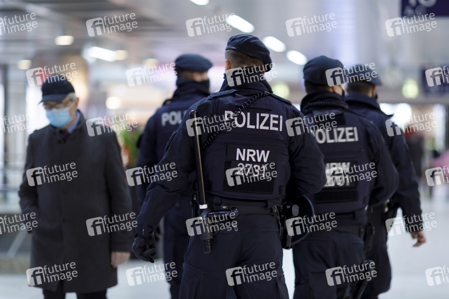 Polizisten sichern am Düsseldorfer HBF die An- und Abreise von Hooligans anlässlich der Querdenken-Demo im Rheinpark Golzheim. Düsseldorf, 06.12.2020