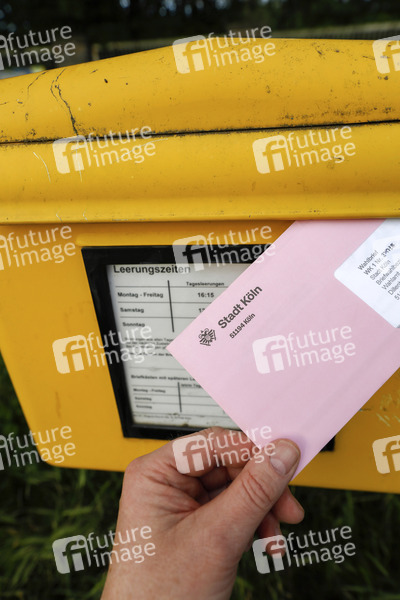 Europawahl, Europäische Union, EU, Europäisches Parlament, Europaparlament, An Eides statt, Antwort, Antwortumschlag, Ausfüllen, Auszählung, Berechtigung, Stimmzettelumschlag, Briefnetz, Briefsendung, Briefsendungen, Briefwahl, Briefwähler, Briefwählerinnen, Briefwahlstimmen, Briefwahlunterlagen, Briefwahlzentrum, Europawahlen, Deutsche Post, Eigenhändige Unterschrift, Fraktion, Fraktionen, Europäische Wahlordnung, Europawahl, Manipulationen, Meldeadresse, Meldeanschrift, Mengen an Wahlbriefen, Parteien, portofrei, Roter Wahlbriefumschlag, Stimmabgabe, Stimmen, Stimmzettel, Stimmzettelumschlag, Transport, Umschlag, Unfrankiert, Unterlagen, Unterschrift, Wahl, Wahlbenachrichtigung, Wahlbrief, Wähler, Wahlergebnis, Wahlkampf, Wahlkampf, Wahlschein, Postbriefkasten, Briefkasten, Symbolbild, Themenbild