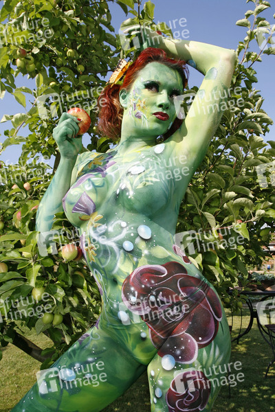 Bodypainting, Erotik, Frau, nackt, draußen, weiblich, Apfel, Apfelbaum, Baum, woman, nude, outdoor, female, erotic, apple, tree