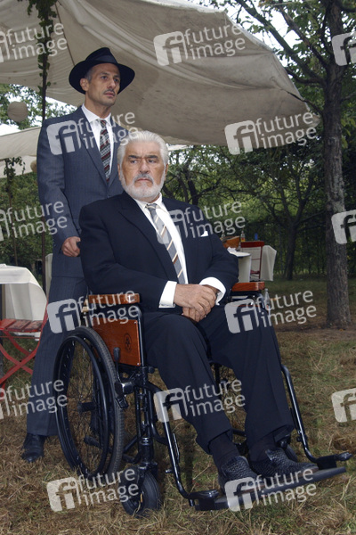 Urs Hefti und Mario Adorf beim Fototermin am Set des ARD-Fernsehfilms 'Vera - Die Frau des Sizilianers'. Meerbusch, 09.01.2003