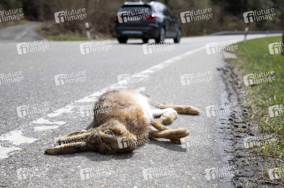 Überfahrener Hase an der Bundesstraße 294. Bad Wildbad im Schwarzwald, 11.04.2021