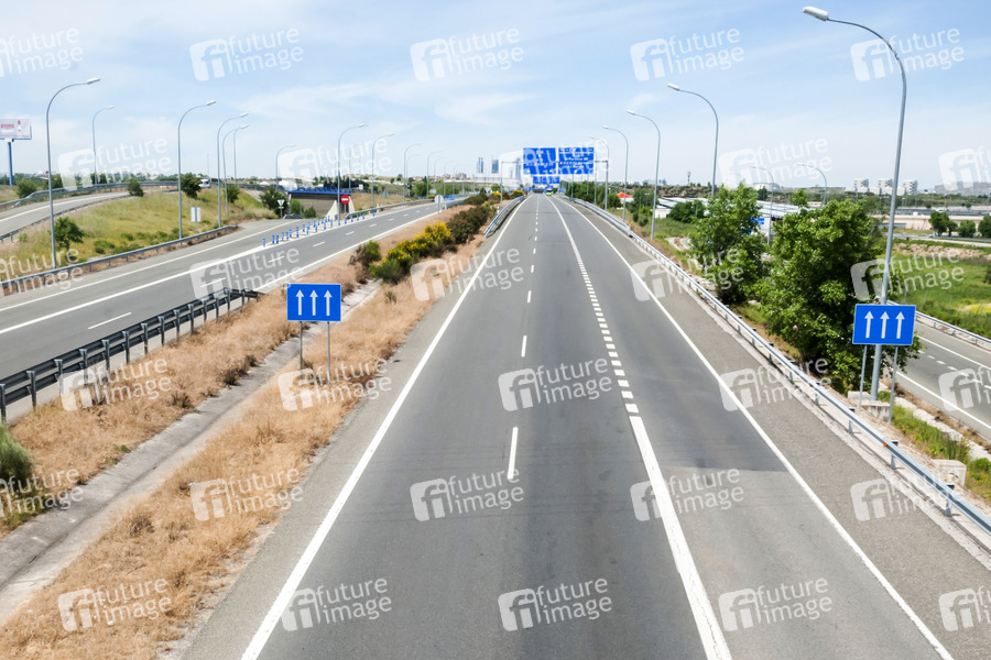 Straße zum Flughafen Madrid-Barajas am 57. Tag seit Verhängung des Ausnahmezustands durch die spanische Regierung wegen der Coronakrise. Madrid, 10.05.2020