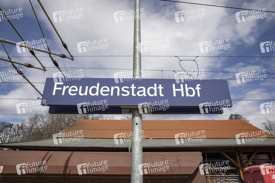 Freudenstadt Hauptbahnhof ist der wichtigste Bahnhof der Großen Kreisstadt Freudenstadt und ein überregional bedeutender Eisenbahnknotenpunkt im Nordschwarzwald. Freudenstadt, 12.04.2021