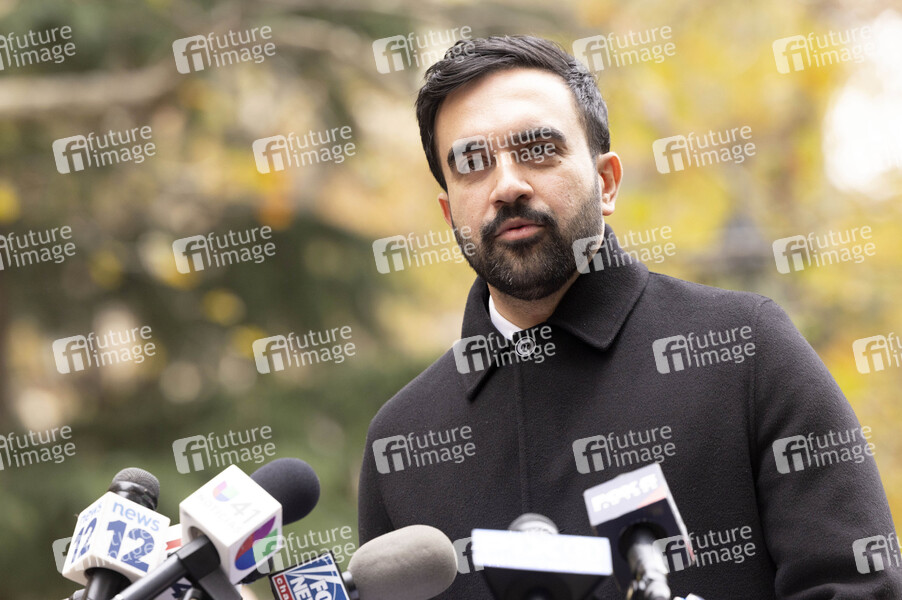 Zohran Mamdani bei einer Pressekonferenz im City Hall Park zu einem bevorstehenden Treffen mit dem US-Präsidenten in Weißen Haus. New York, 20.11.2025