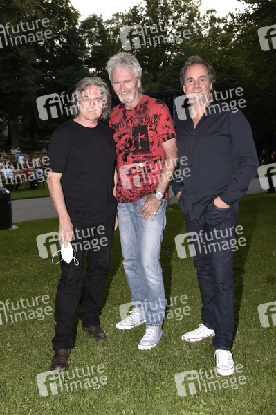 Peter Howarth, Pete Lincoln und Mick Wilson von Frontm3n beim Open Air Konzert im Kurpark in Bad Aibling. 13.08.2021
