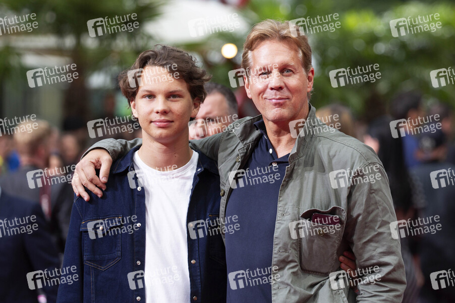 Thomas Heinze mit Sohn Sam bei der Premiere des Kinofilms 'Once Upon a Time in... Hollywood' im CineStar Sony Center am Potsdamer Platz. Berlin, 01.08.2019