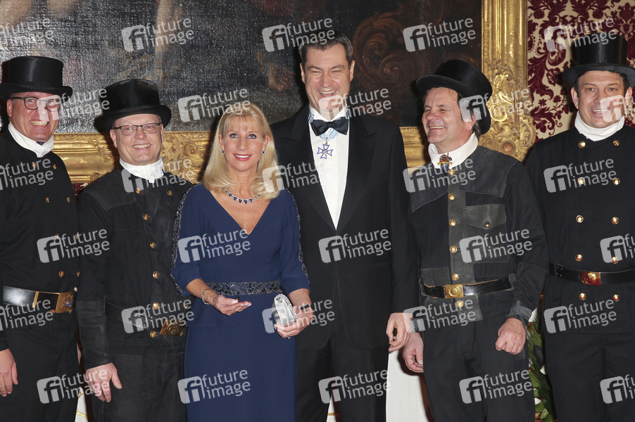 Kaminkehrer und Markus Söder mit Ehefrau Karin Baumüller-Söder beim Neujahrsempfang des Bayerischen Ministerpräsidenten 2020 im Kaisersaal der Residenz. München, 10.01.2020