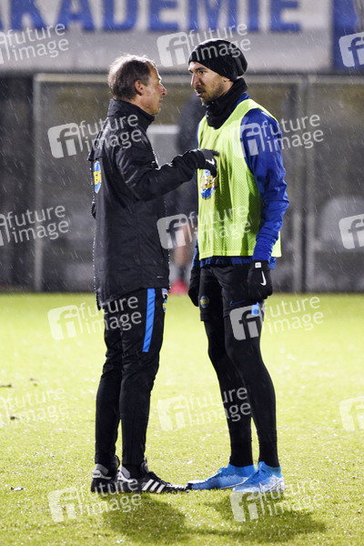 Jürgen Klinsmann und Mathew Leckie beim ersten Training von Hertha BSC mit neuen Trainerteam im Olympiapark-Amateurstadion. Berlin, 27.11.2019
