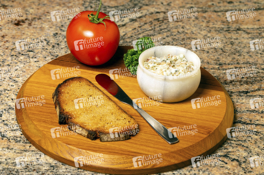 Schmalz, Schmer, Essen, Nahrung, Speise, Ernährung, Gänseschmalz, Putenschmalz, Schweineschmalz, Griebenschmalz, Butterschmalz, Schweinefett, Bauchfett, Schmalztopf, Brot, Petersilie, Tomate, Themenbild, Symbolbild
