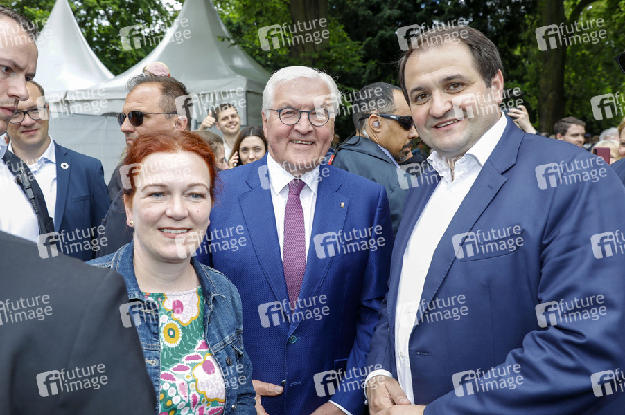 Katja Dörner, Frank-Walter Steinmeier und Nathanael Liminski beim Besuch des Bundespräsidenten Frank-Walter Steinmeier am Tag der offenen Tür in der Villa Hammerschmidt und beim 'Fest der Demokratie' zu 75 Jahren Grundgesetz der Bundesrepublik Deutschland. Bonn, 25.05.2024