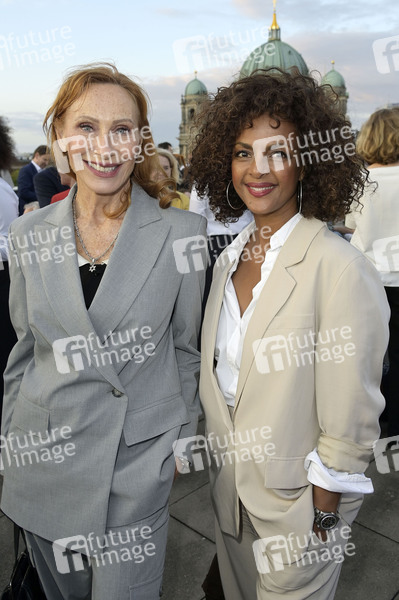 Andrea Sawatzki und Dennenesch Zoude beim Eröffnungsempfang der UFA Filmnächte 2024 auf der Dachterrasse der Bertelsmann Repräsentanz. Berlin, 21.08.2024
