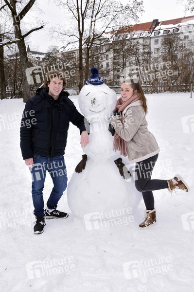 Prominenz, Celebrity, Celebrities, exklusives Fotoshooting, Photoshooting, Fototermin, Schnee, Winter, Unterhaltung, Entertainment, Schneemann, Regisseur, Kabarettist, Schauspielerin