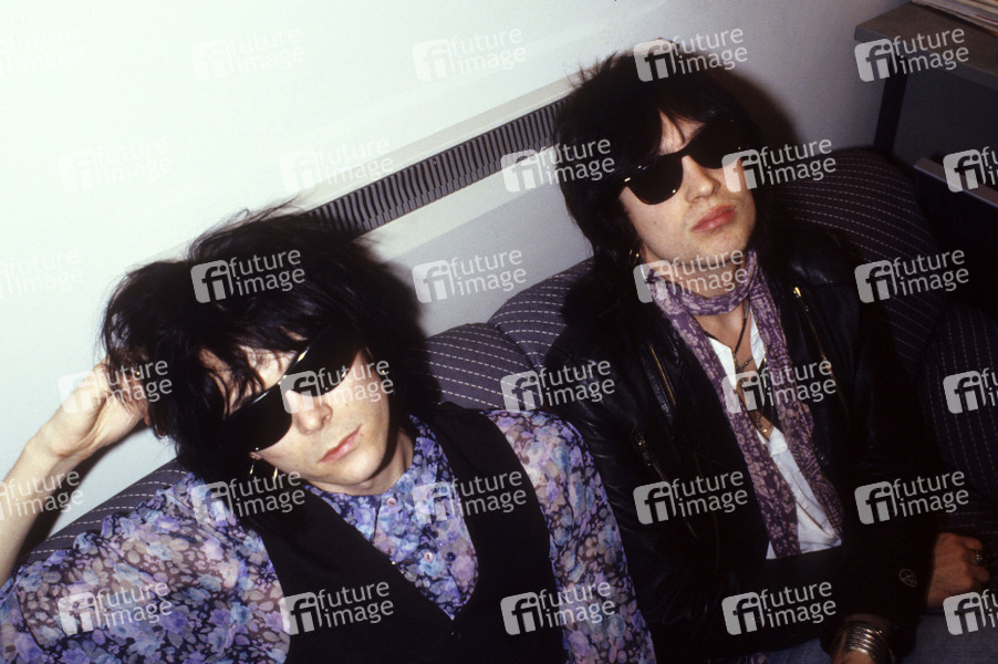 Danny Nordhal und Roger Ericson von The Throbs bei einem Photoshooting in einem Hotel. London, 05.04.1991