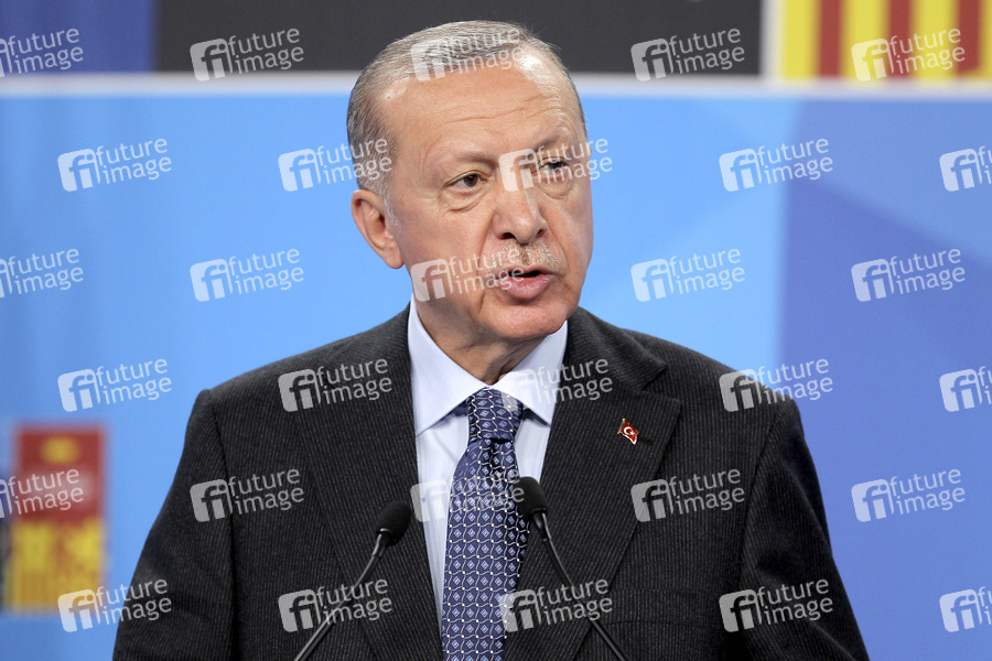 Recep Tayyip Erdogan bei einer Pressekonferenz zum Abschluss des Nato-Gipfels im IFEMA Congress Center. Das nordatlantische Bündnis hat das strategische Konzept 2022 verabschiedet. Die Kernaufgaben bleiben. Russland ist die größte Bedrohung für die NATO und China spielt nun eine größere Rolle in der sicherheitspolitischen Betrachtung. Das neue strategische Konzept ist ein Signal der transatlantischen Geschlossenheit. Madrid, 30.06..2022
