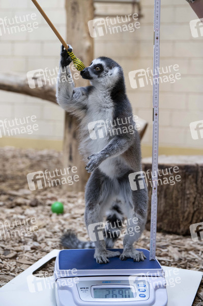 Katta bei der Inventur mit Wiegen und Vermessung der Tiere im Thüringer Zoopark Erfurt. Erfurt, 18.01.2022