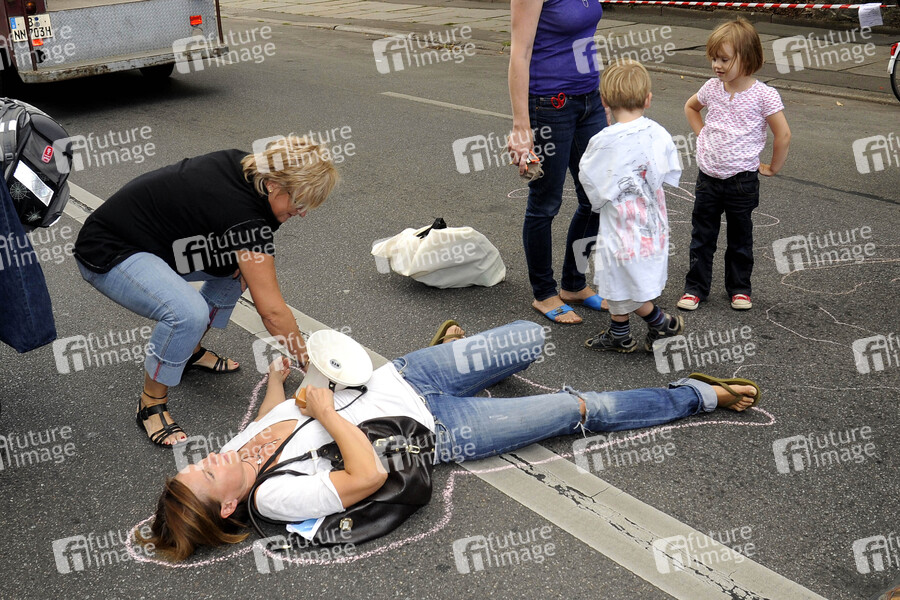 Demo 'Mehr Sicherheit fuer unsere Kinder!''. Bürger des Wohngebiets Bötzowviertel im Prenzlauer Berg, zu denen auch die Schauspielerin zählt, kämpfen für die Verkehrsberuhigung der Strasse 'Am Friedrichshain' in Berlin