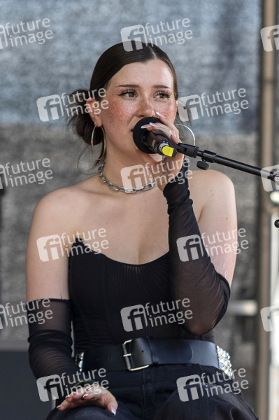 Marisabelle live auf der Bühne beim bundesweiten Klimastreik von Fridays for Future unter dem Motto 'Exit Gas - Enter Future' mit Demonstration und Kundgebung am Fischmarkt. Hamburg, 20.09.2025