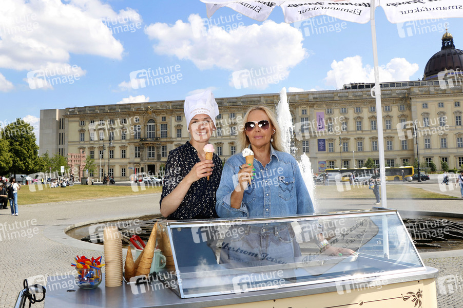 Natascha Ochsenknecht verteilt mit Loreen Herrmann im Lustgarten vier von ihr kreierte Eissorten, die ab dem 23. Mai 2024 im Onlineshop von Jerseys Honest Ice Cream erhältlich sind. Berlin, 23.05.2024