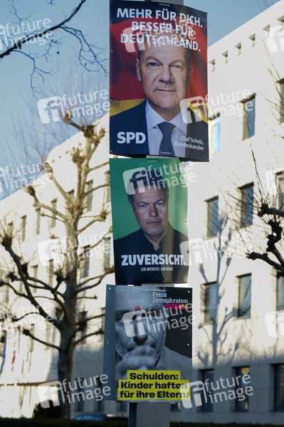 Wahlplakate von SPD, Bündnis 90/Die Grünen und FDP zur Wahl zum 21. Deutschen Bundestag. Bonn, 02.02.2025
