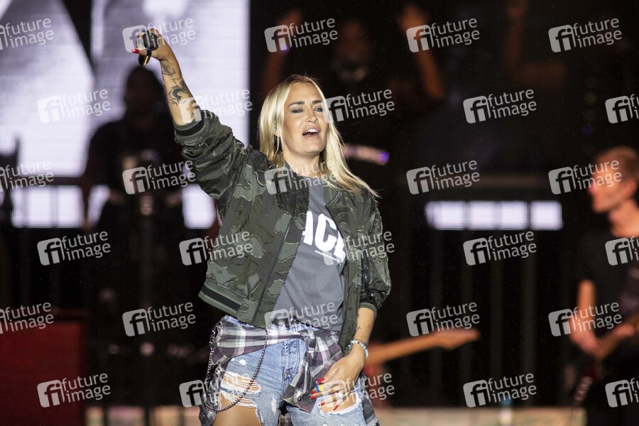 Sarah Connor live bei einem Konzert ihrer 'Herz Kraft Werke'-Tour beim Apoldaer Musiksommer 2022 auf der Festwiese in der Herressener Promenade. Apolda, 05.08.2022