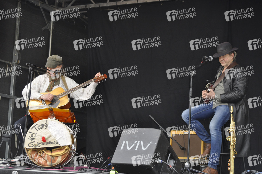 Gitarren-Duo Onkel Tom und Huckleberry bei der Maikundgebung der Partei Die Linke auf dem Alaunplatz. Dresden, 01.05.2021