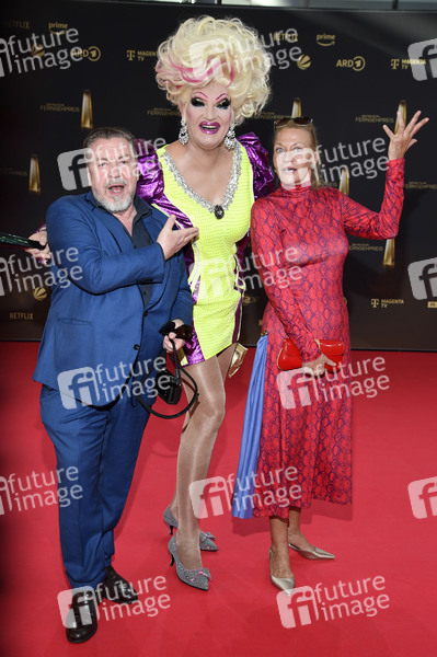 Armin Rohde, Olivia Jones und Karen Böhne bei der Verleihung des Deutschen Fernsehpreises 2025 in den MMC Studios. Köln, 10.09.2025