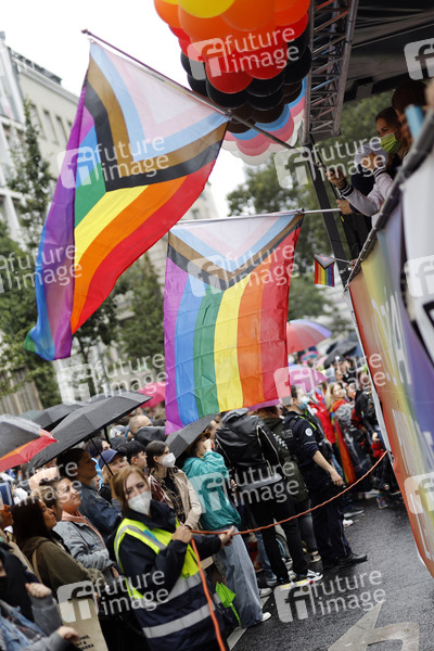 Etwa 10.000 Menschen waren auf der Christopher-Street-Day-Parade in Köln. Mit dem Marsch am Rhein sollte unter anderem für die Rechte von Schwulen, Lesben, Bisexuellen und Transgender demonstriert werden. Köln, 29.08.2021