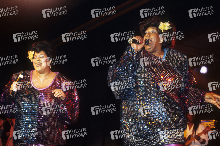 Martha Wash und Izora Armstead von The Weather Girls live im Hammersmith Palais. London, 31.05.1984