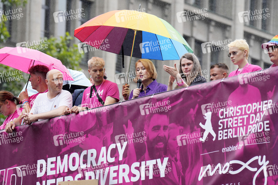 Lisa Paus bei der 46. Christopher Street Day Parade 2024 unter dem Motto 'Nur gemeinsam stark - für Demokratie und Vielfalt'. Berlin, 27.07.2024